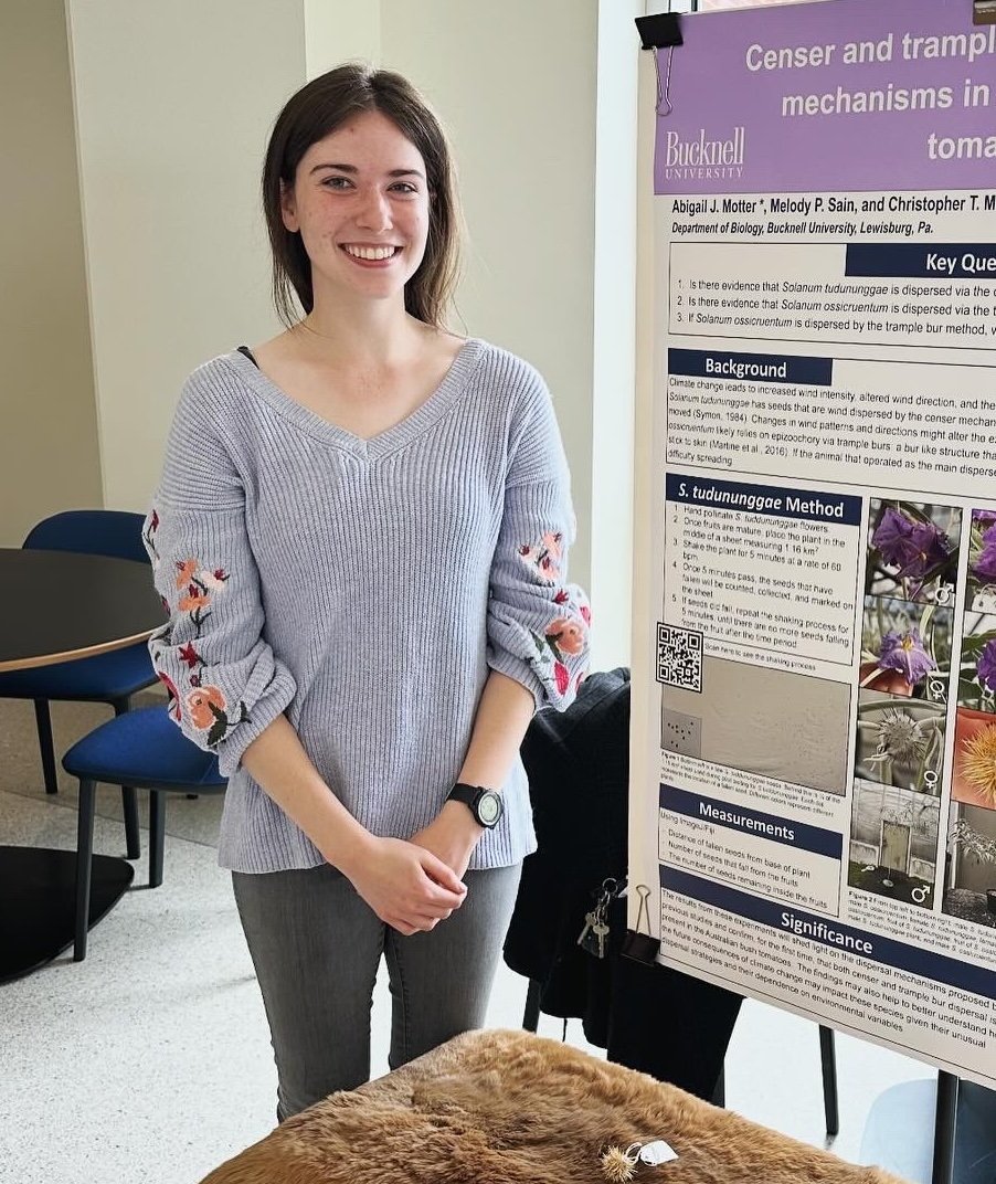 My name is Kayleigh Long and I am a senior from Charlottesville, Virginia, studying biology and environmental science. I have been a member of the lab since my freshman year and have worked on a range of botanical projects, including an assessment of the invasive potential of a cultivated species and population genomics. Currently, I am working on a new Australian Solanum species project. After graduating from Bucknell this spring, I will be attending veterinary school.