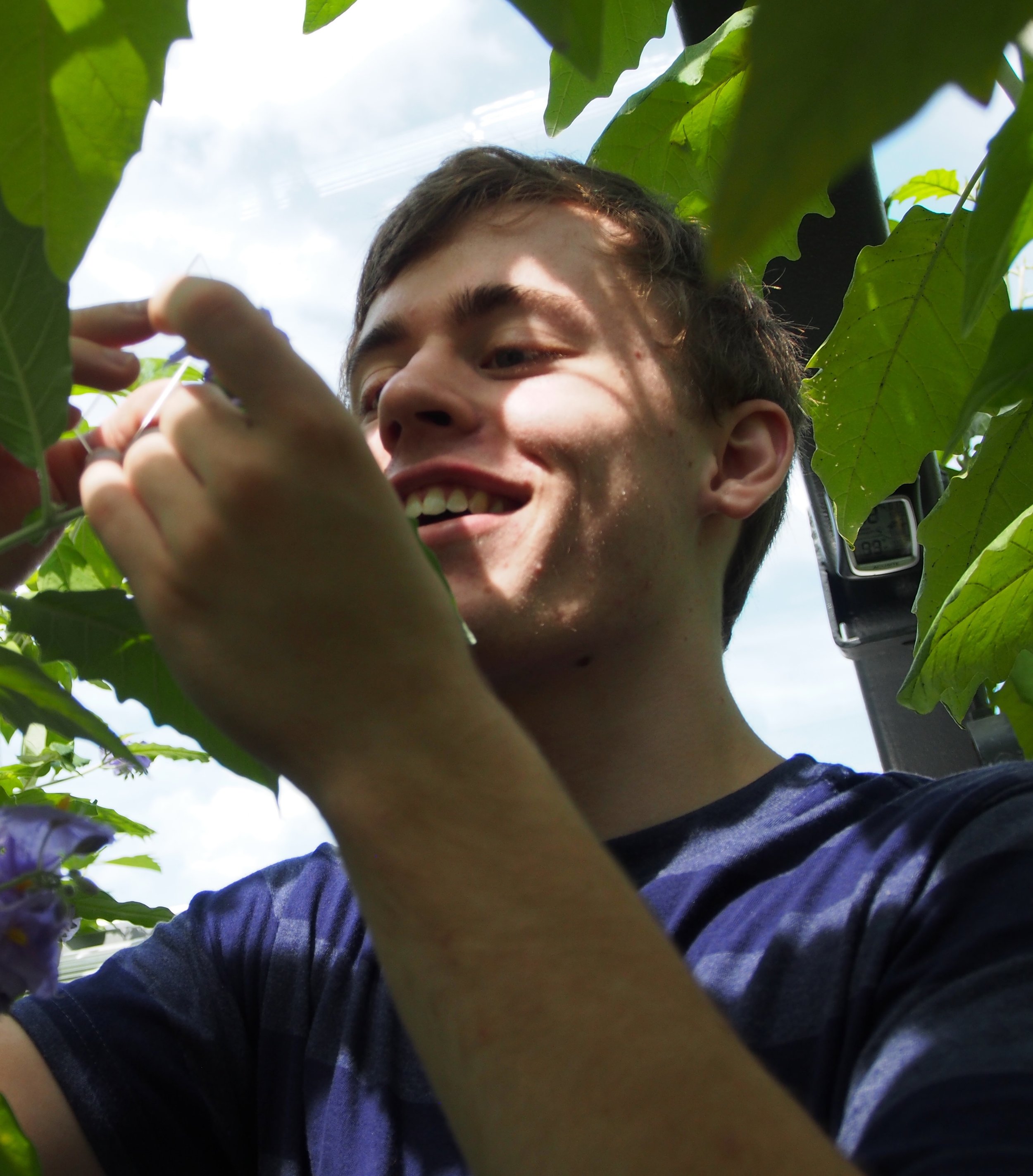 I am a Biochemistry/Cell Biology and Film & Media Studies major from Brentwood, Maryland. Outside of academics, I spend much of my time writing, playing with my cats, or spending time with friends. In the lab, I have developed an interest in extrafloral nectaries in a newly studied Solanum species, and I hope to explore how environmental factors influence nectar secretion.